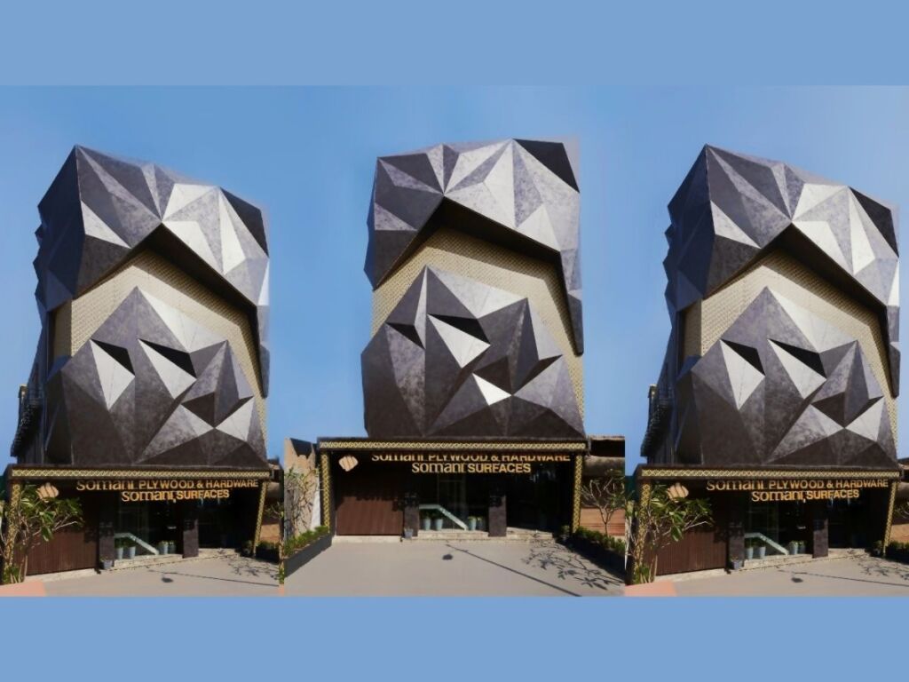 The facade is the most prominent unique feature of the building, which uses triangular and asymmetrical designs made by mixing angles and shapes that gives the building an unexpected and never-seen-before appearance. “The facade is designed in an imaginative way, but at the same time gives a stable structure”, noted the Architect, Anand Sarda.